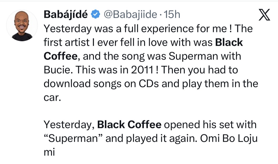One attendee captured what many in the room were feeling. He had fallen in love with Black Coffee in 2011 through "Superman," a collaboration with Bucie, downloaded onto CD and played in the car because that was how you got music then. Black Coffee opened his Lagos set with that song. Fifteen years of relationship with an artist, collapsed into a single opening track in a packed room. The response in that moment said everything about who was in that room and why they were there.